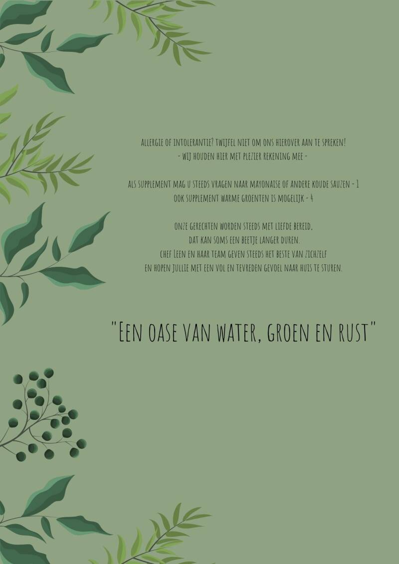 Chef Leen en haar team geven steeds het beste van zichzelf om jullie met een tevreden gevoel huiswaarts te sturen.